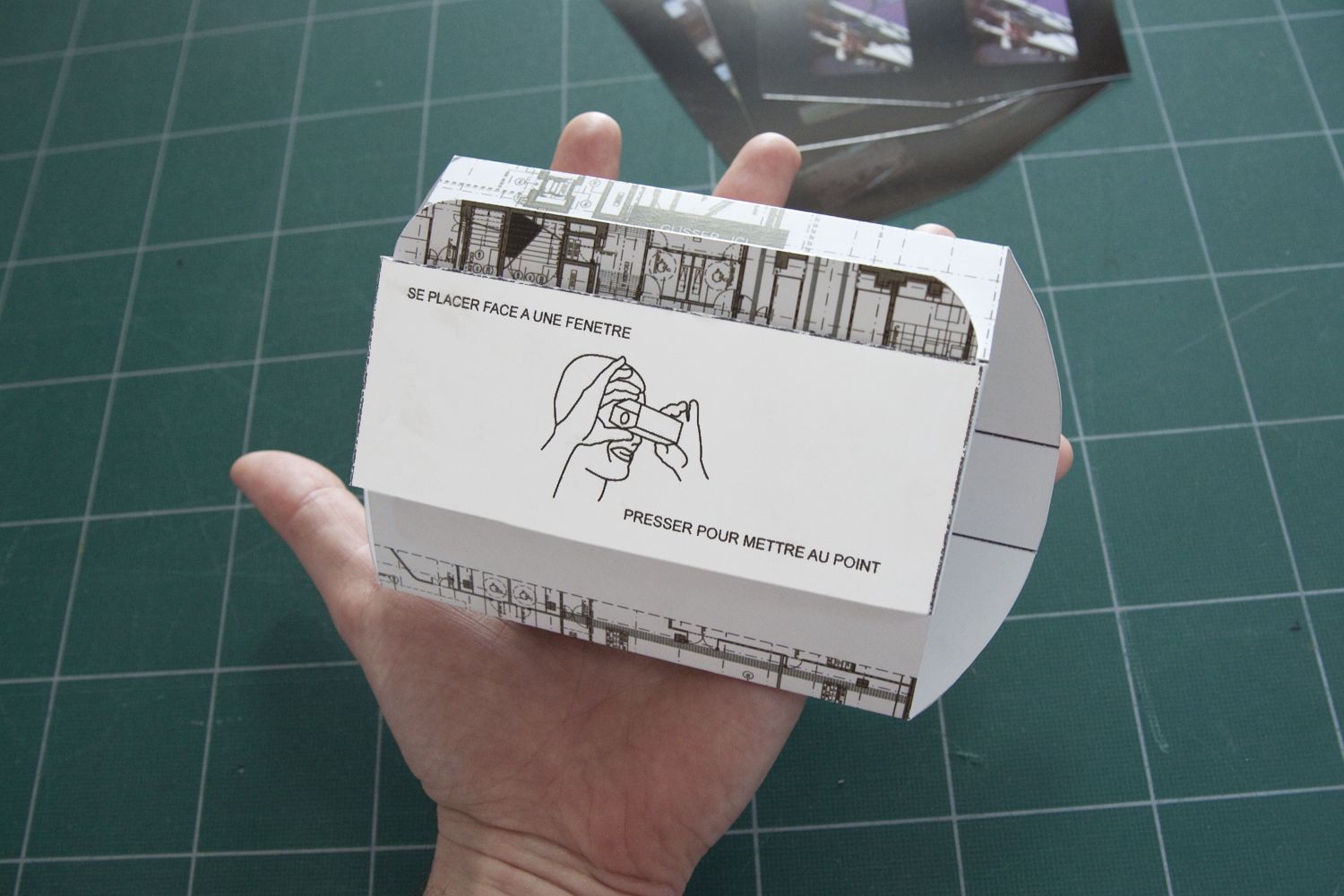 Un visionneuse et 3 planches de 5 vues en 3D. ![Le mode d'emploi au dos.]()